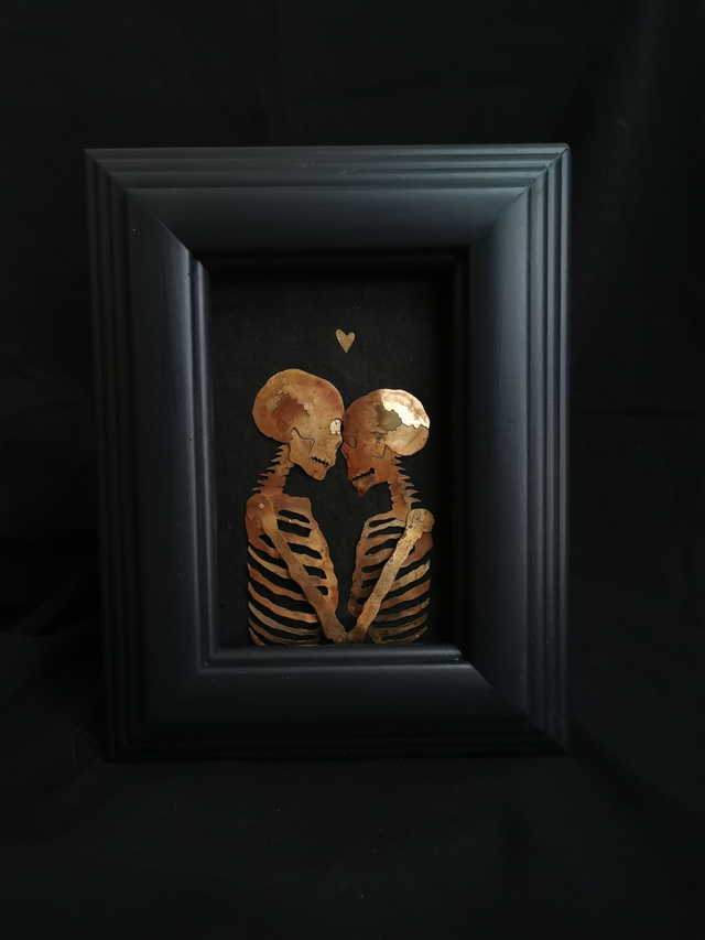 Illustration en laiton dessinée et découpée à la main. Oxydation sans produit chimique .