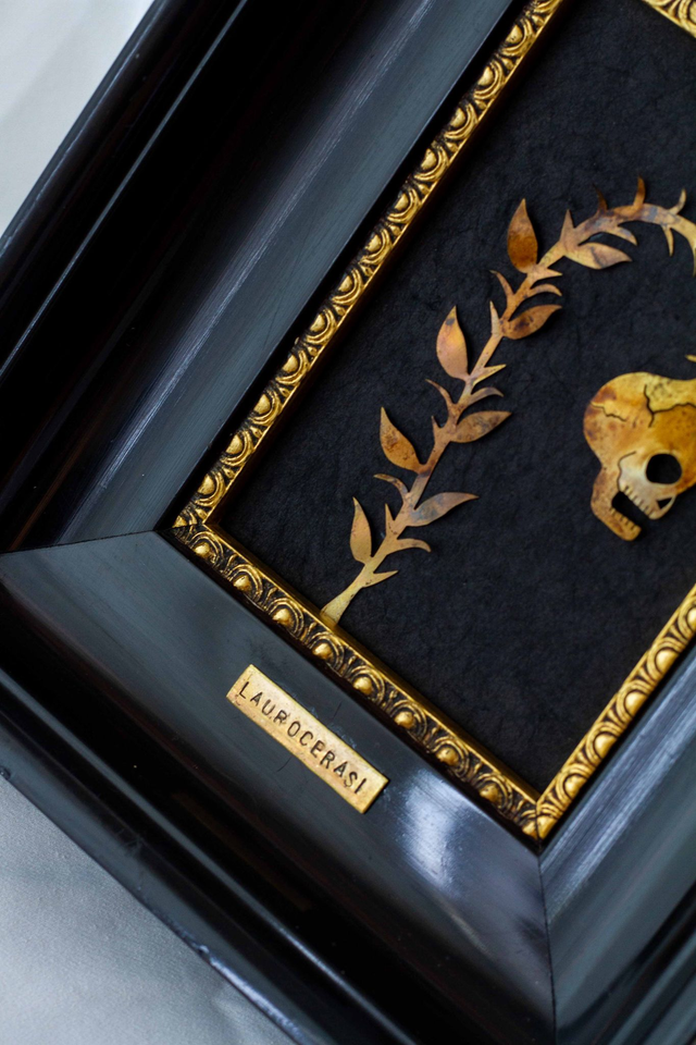 Pièce unique dessinée et découpée à la main.