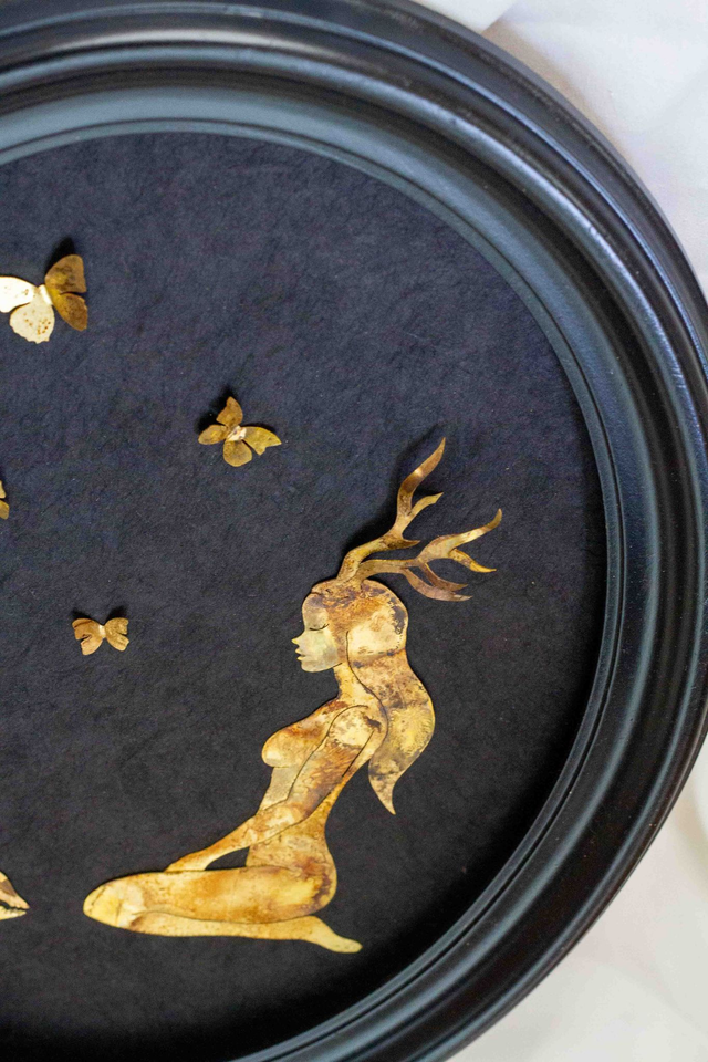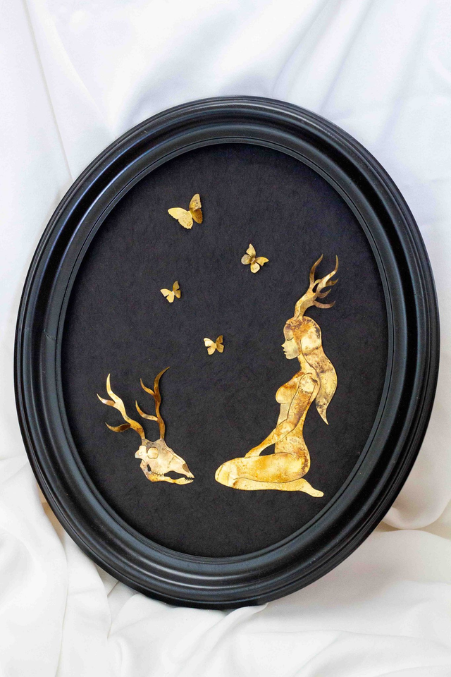 Pièce unique dessinée et découpée à la main.