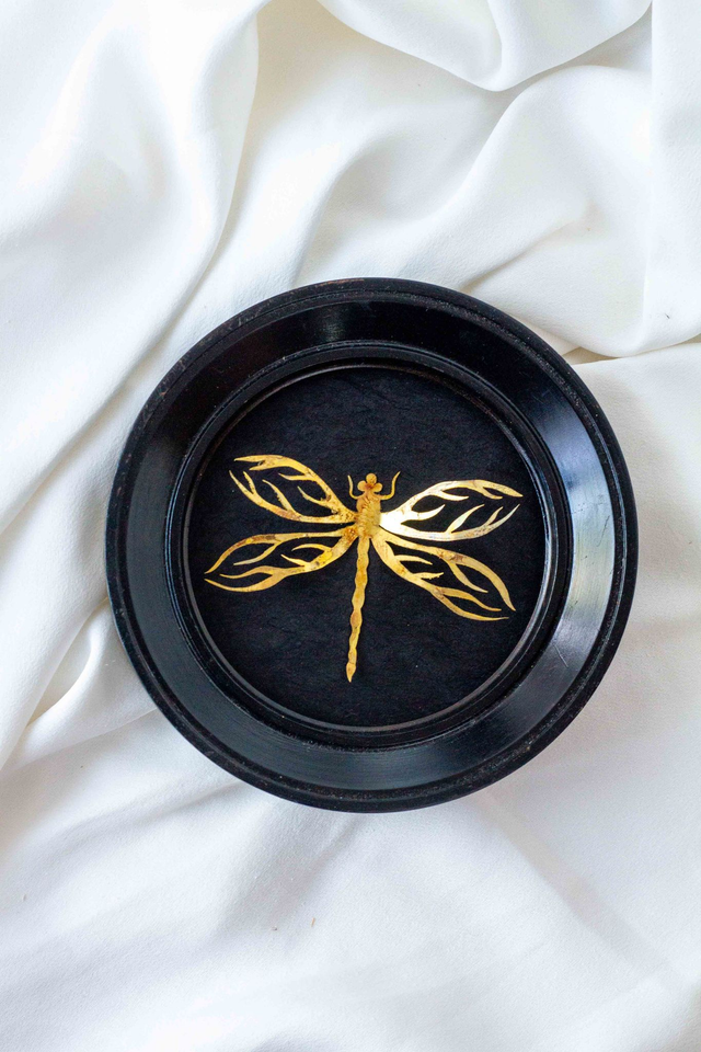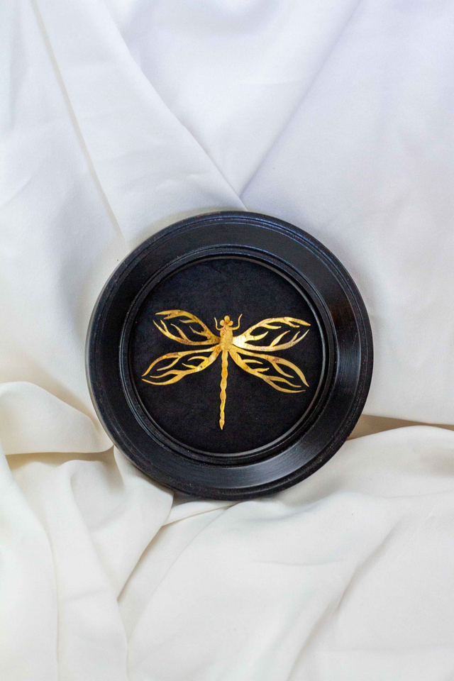 Cadre noir, rond, ancien en bois.