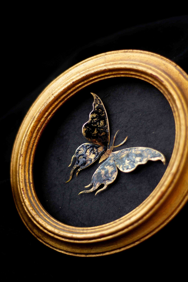 Illustration en laiton dessinée et découpée à la main. Oxydation sans produit chimique.