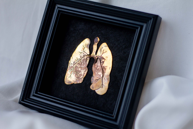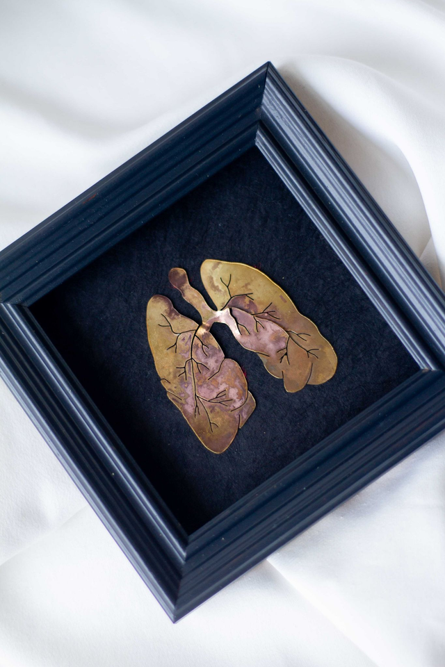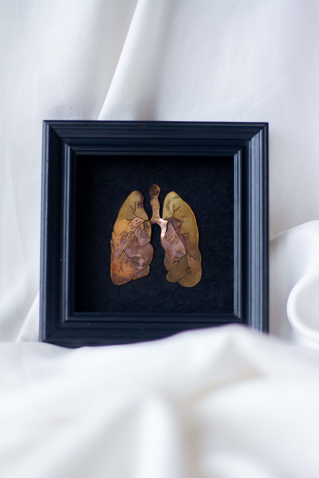 "Plus qu'une simple représentation anatomique, ce tableau incarne l'essence même de l'existence. C’est un récit intime de chaque souffle, de chaque inspiration et expiration qui rythment nos vies. Il symbolise la délicatesse de la vie, la nécessité vitale de chaque souffle, un rappel poignant de l'importance de chaque instant où nos poumons s'emplissent de cet air qui nous lie à l'univers."