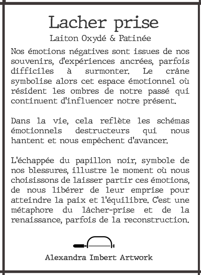 Illustration en laiton dessinée et découpée à la main. Oxydation sans produit chimique .